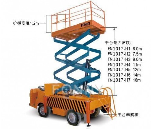 • 該設備移動方便,作業流動范圍廣,適用于作業范圍大,流動性強的各行高空作業。