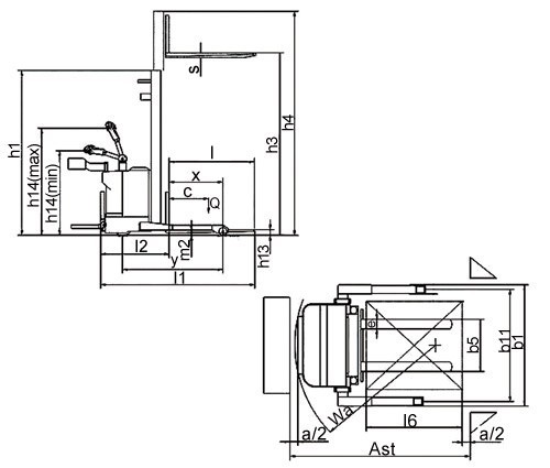 通道寬度,托盤800×1200(1200沿貨叉放置)(Ast) |