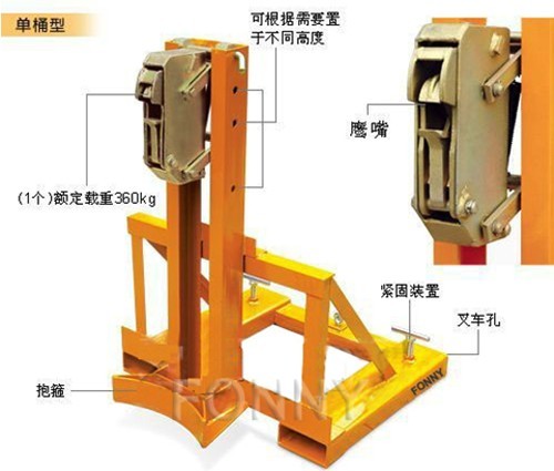 • 輔助設備可幫助夾鉗放下和打開油桶